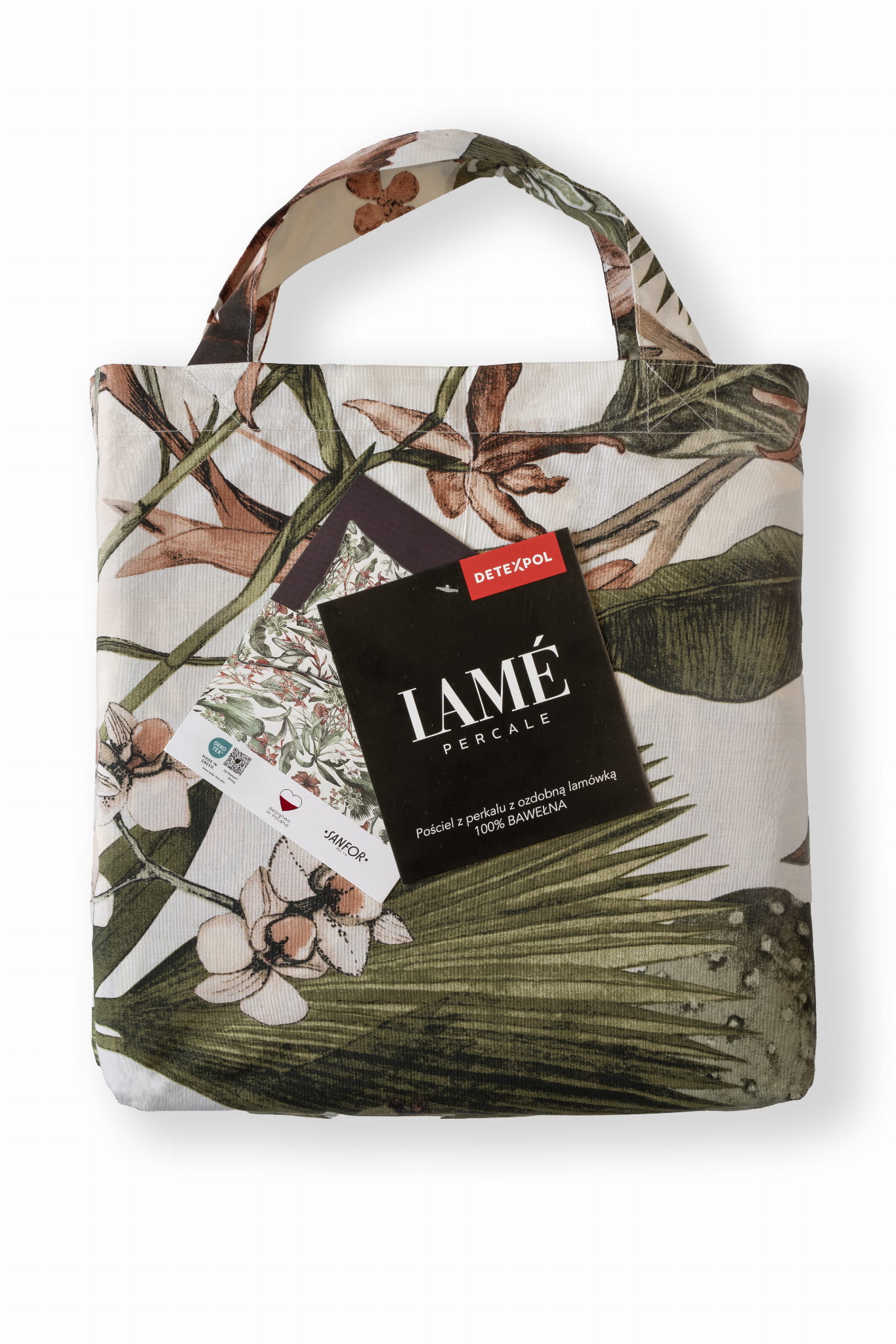 Każdy komplet pościeli z linii Lame Percale zapakowany jest w dedykowaną torbę uszytą również z tkaniny perkalowej (tej samej, co pościel). Pozwoli ona ocenić jakość i wzór tkaniny, zaś potem służyć jako torba w sam raz na zakupy.