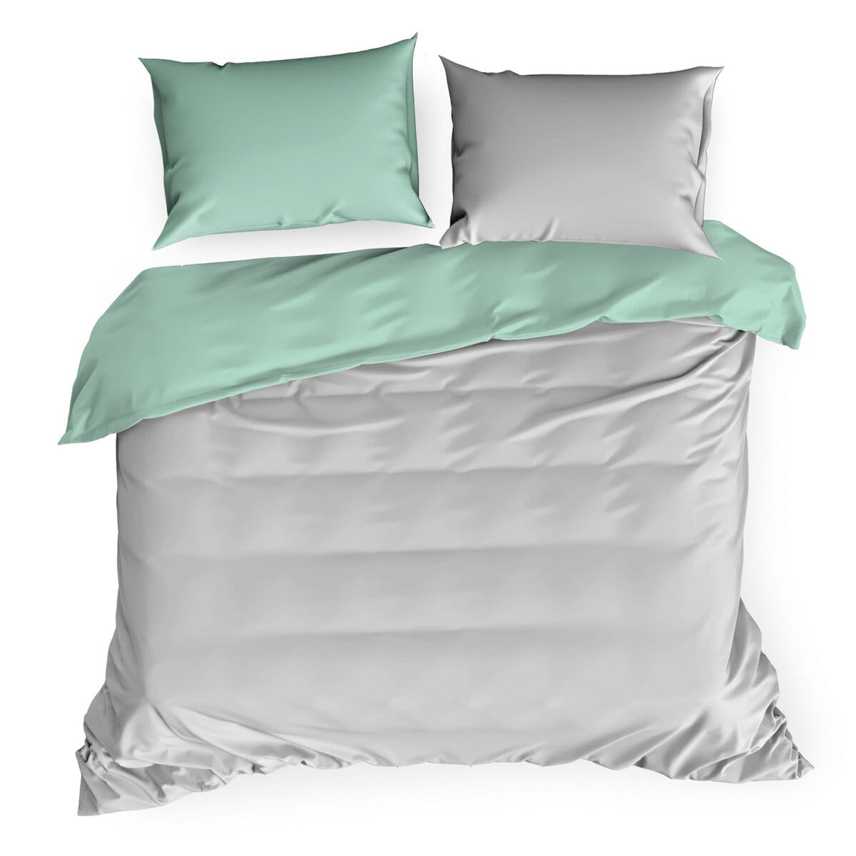 Pościel 220x200cm + 2 Poszewki 100% Satyna Bawełna Srebrno-Miętowa Eurofirany