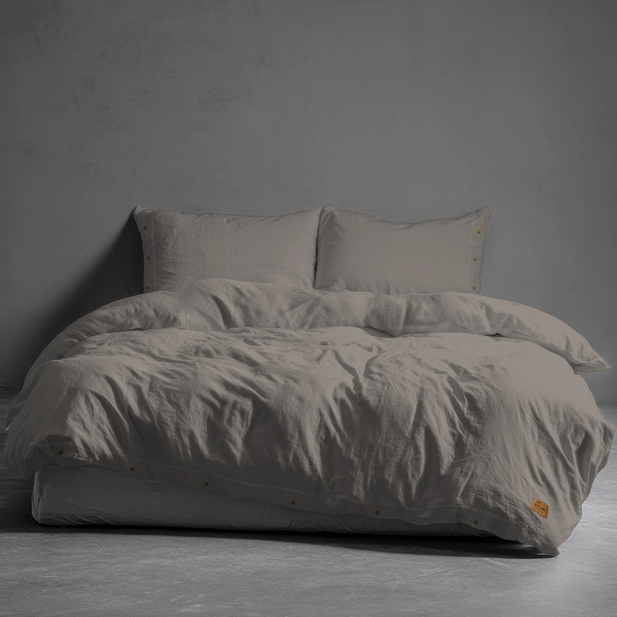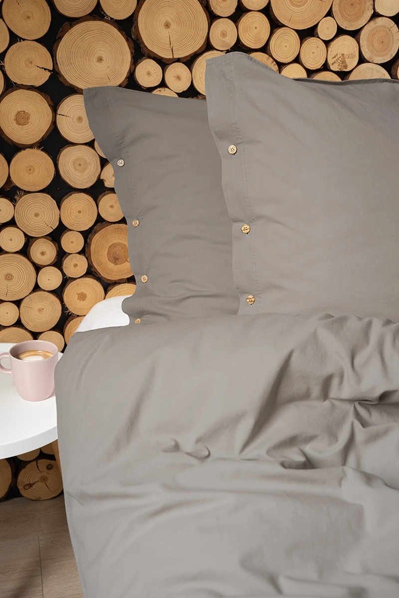 Pościel z Ozdobnymi Guzikami 160x200 + 2 Poszewki 100% Bawełna Pure Ciepłoszara Detexpol