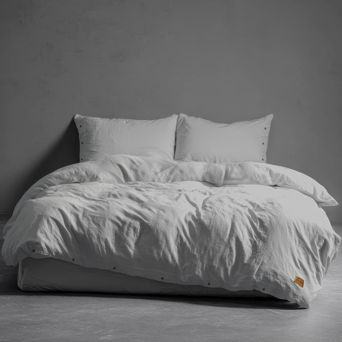 Pościel z Ozdobnymi Guzikami 160x200 + 2 Poszewki 100% Bawełna Pure Jasnoszara Detexpol